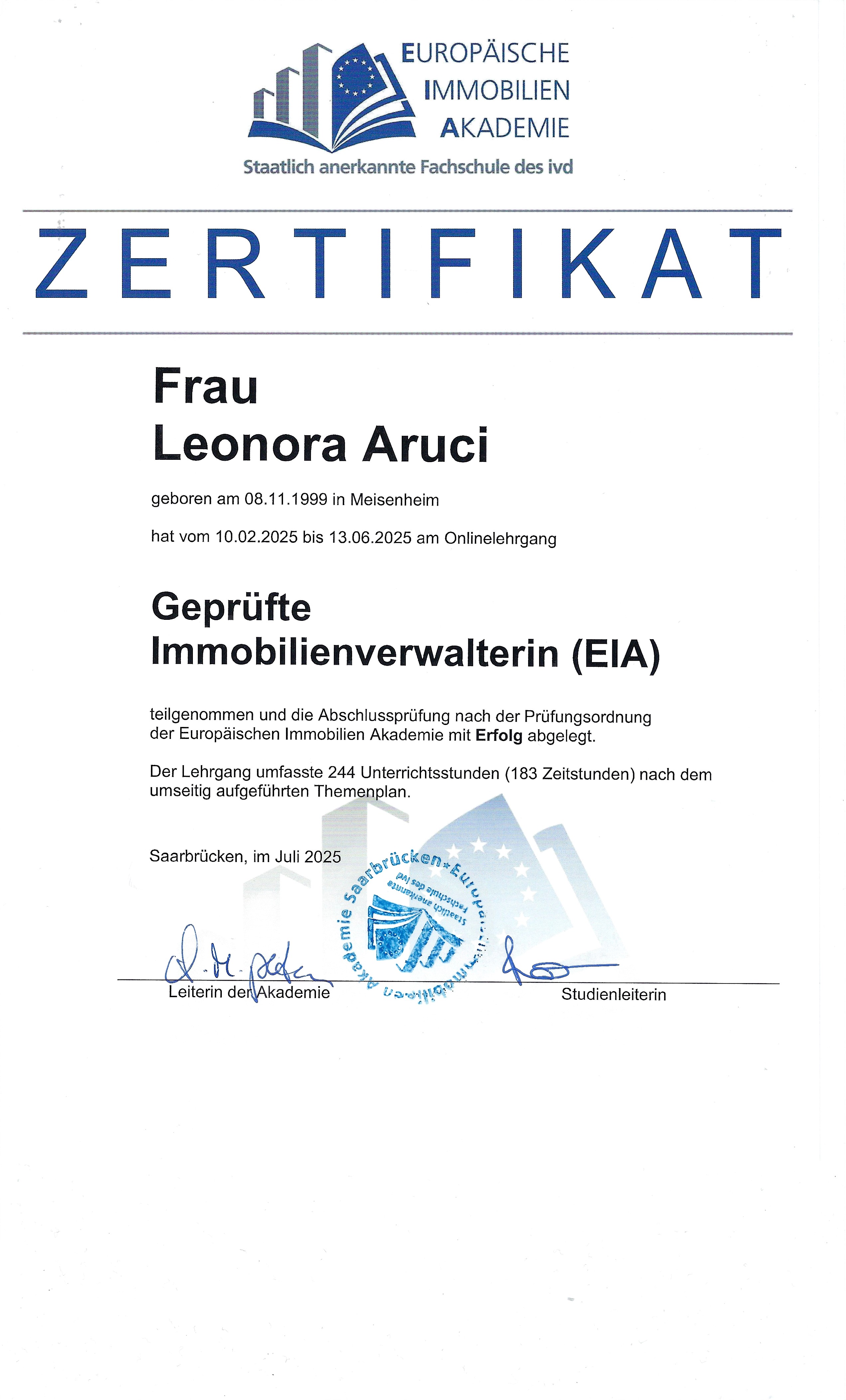 innerhalb eines Zeitraums von drei Jahren müssen sie dann absolvieren.